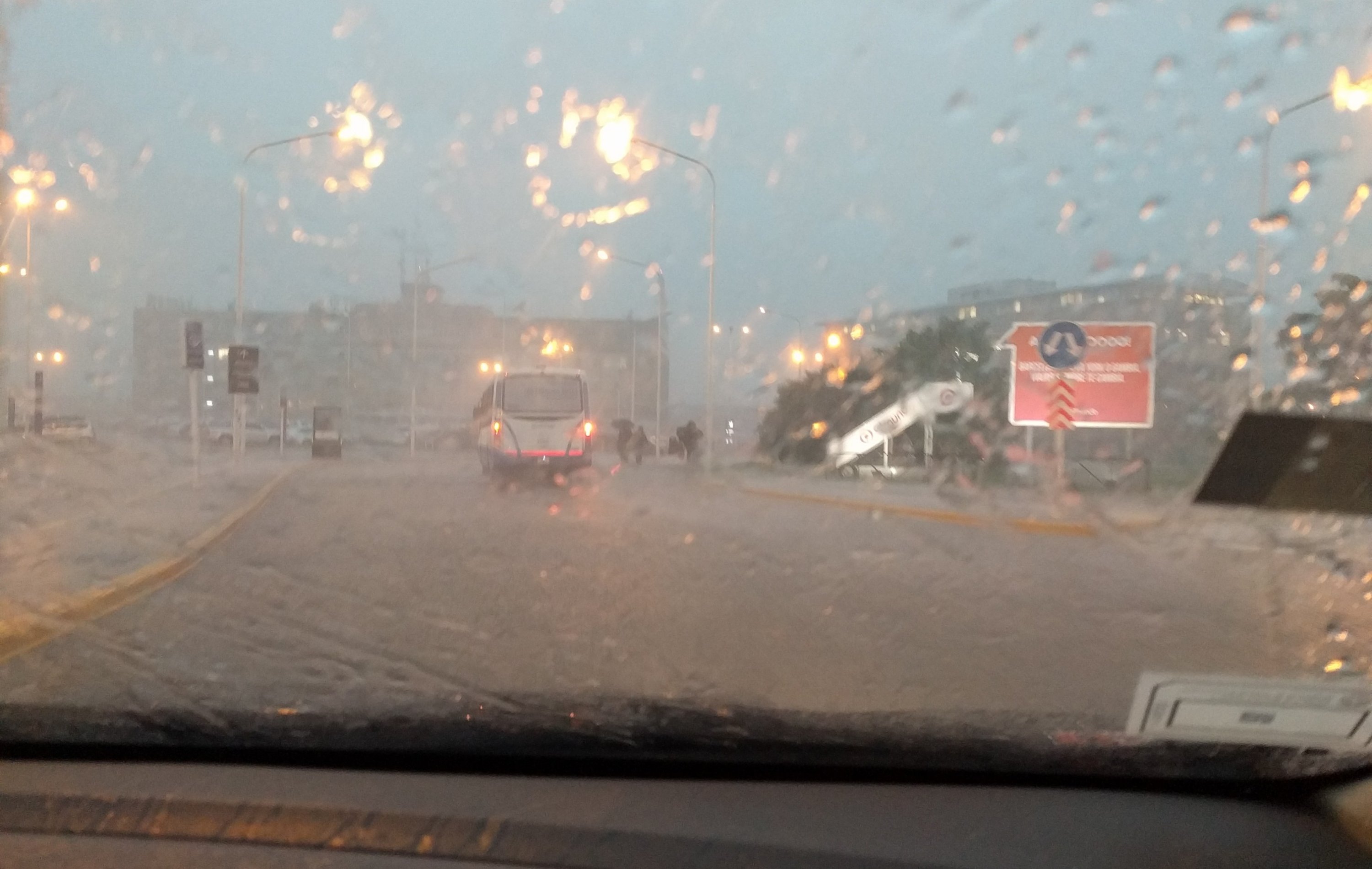 Sat 6am: Taxi driver is a bit crazy, talking on cell phone (presumably about the upcoming match) and singing along to AC/DC. We speed out of city as sun is rising, and driver notes massive black cloud and comments “big storm!” Oh great! Gets really dark, begins to rain heavily, and lightening flashes somewhere around the airport. Final four gasp and driver says “relax”, and relates the storm to the the movie he watched last night – Back to the Future! Highways become quickly flooded with water, and after getting splashed with water and zero visibility, driver slows from 110km/hr to 45km/hr.