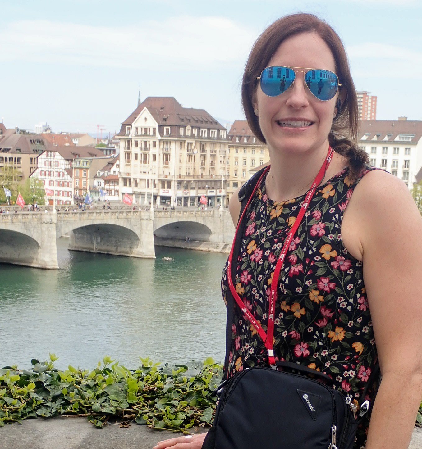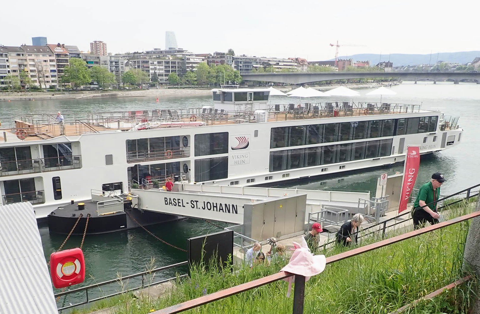 After travelling to Montreal and having supper at Archibauld, we made it in time for final boarding for our overnight flight to Frankfurt. The flight was quite turbulent, but seemed to pass quickly with each of us getting little sleep. The Frankfurt airport provided some early morning exercise with about 3000 steps to our gate. However, our sleepiness was put to the test with a vigorous security check, with a thorough check of our bags and a pat down for a few! With the sun shining, we waited for our next flight to Basel. In our stupor, we realized just in time that our flight was boarding and took a bus to our plane…Frankfurt airport is huge. We were excited to be given a Kit Kat bar each on boarding and decided it was just what we needed. An hour and a half later, we landed in Basel and we thrilled to collect our luggage and board the bus to our ship…the Viking Hlin.