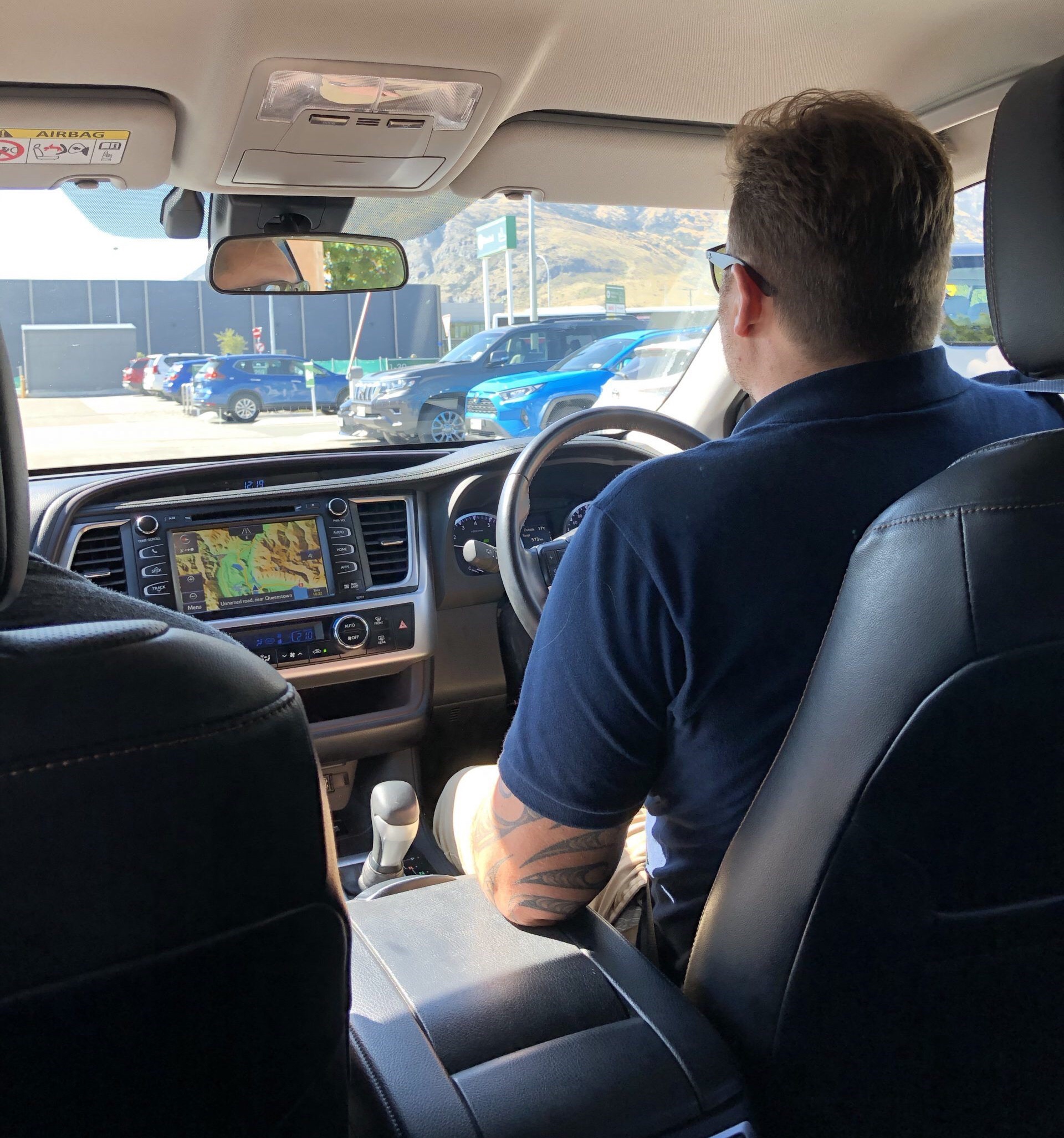 Once we descended through the clouds, it was a pretty epic landing into the valley (video on request). Our friends Will and Michelle arrived from Wellington about 20 minutes after our flight landed. It was a pretty special reunion to meet Will in his home country! Yay! We picked out our rental Toyota Highlander, left hand drive SUV and we are thankful to have Will at the wheel! Yikes, I keep forgetting to look right!