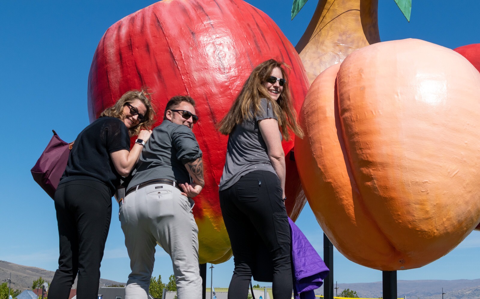 Some obligatory selfies at the “fruit” in Cromwell along the way were in order. #peach