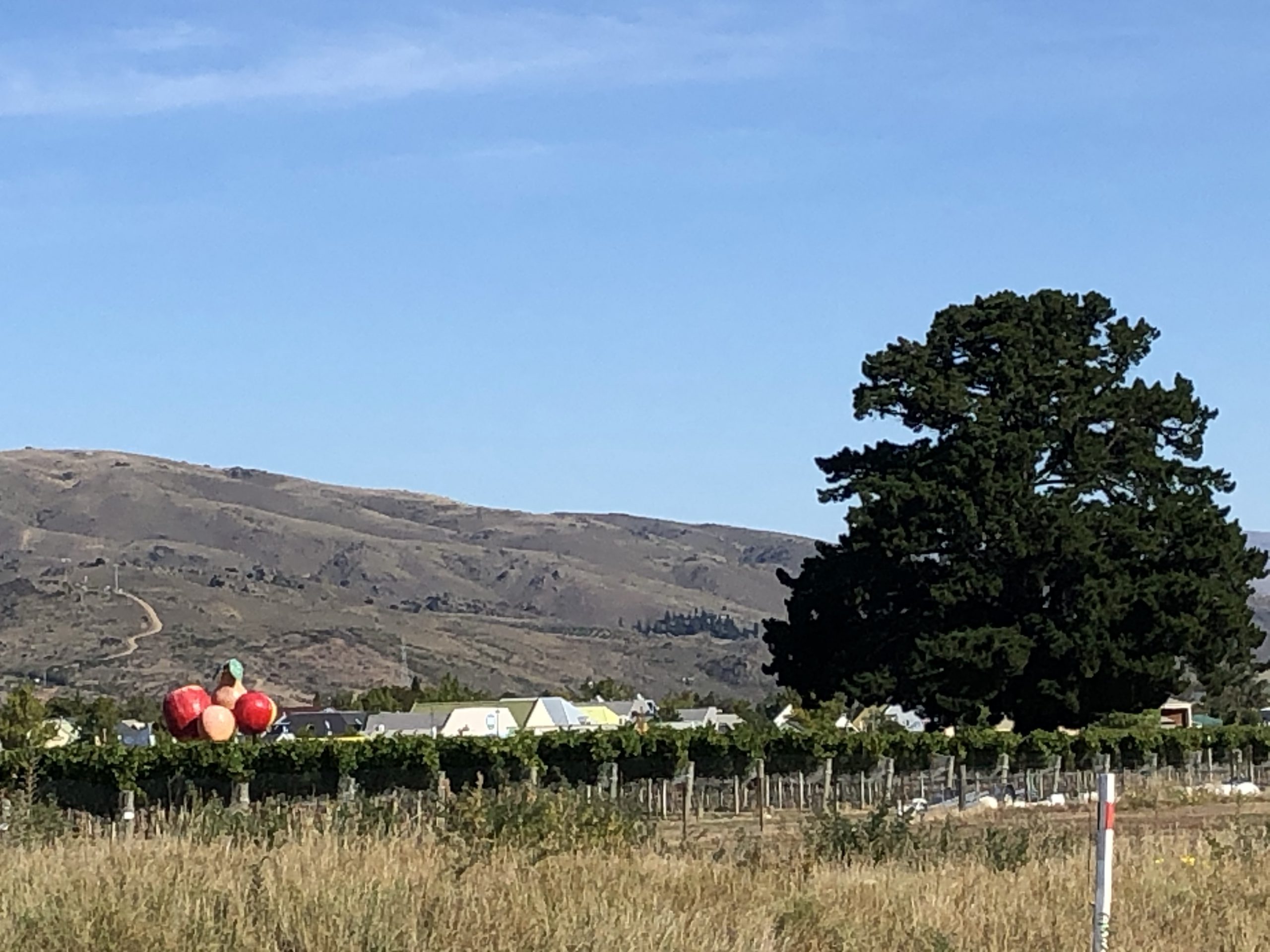 We then set out on a twisty drive to Cromwell, the Fruit Basket of Central Otago, along the river valley which bought us to our lovely home for the next 2 nights, Heritage Cromwell Lake Resort. We checked in and chatted with some guys who owned a Chev truck with Ontario liscence plates…apparently it is cheaper to ship a vehicle to NZ rather than rent one while they are here working for 5 months!! A quick drive back to Cromwell centre for a visit to the grocery store for some provisions for supper – wine, cheese, bread and chocolate; those are the 4 major food groups on vacation, right??!