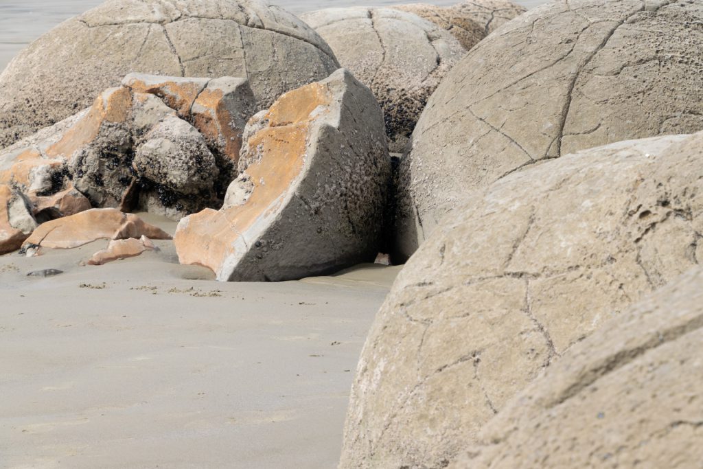 The following day’s itinerary included a drive to see the Moeraki Boulders, about 40 minutes away, on the Koekohe Beach between Moeraki and Hampden. These boulders are actually concretions that have been exposed through shoreline erosion from coastal cliffs. They originally started forming in ancient sea floor sediments around 60 million years ago, and the largest boulders are estimated to have taken about 4 million years to get to their current size. The beach provides an atmosphere and scene that can’t be matched anywhere else in New Zealand, or the world!