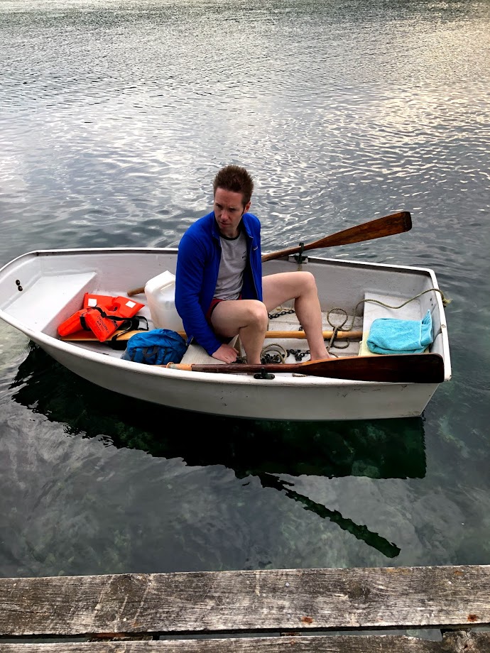 Michelle and Tanya received an invitation to be picked up by row boat at a boat shed along the shore, and instructed to bring a bottle of wine! Niccy urged us to go, stating “you don’t get an invite like that everyday.” So we set out along the inlet path, with our bottle of wine, and found our way to the quaint boat sheds just in time for our dory to arrive. After precariously climbing in, the three of us had a romantic, memorable row around the inlet and were safely deposited back on the dock, alongside the “wee” boat sheds.