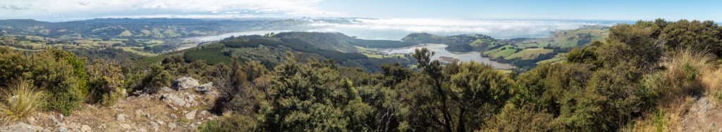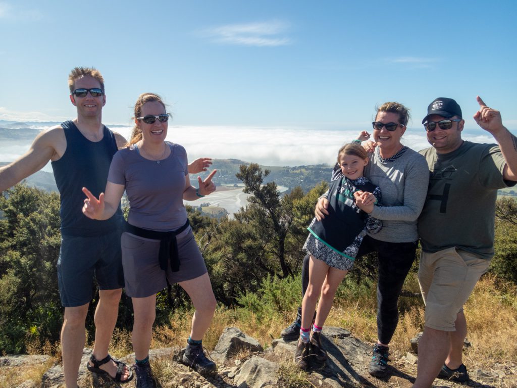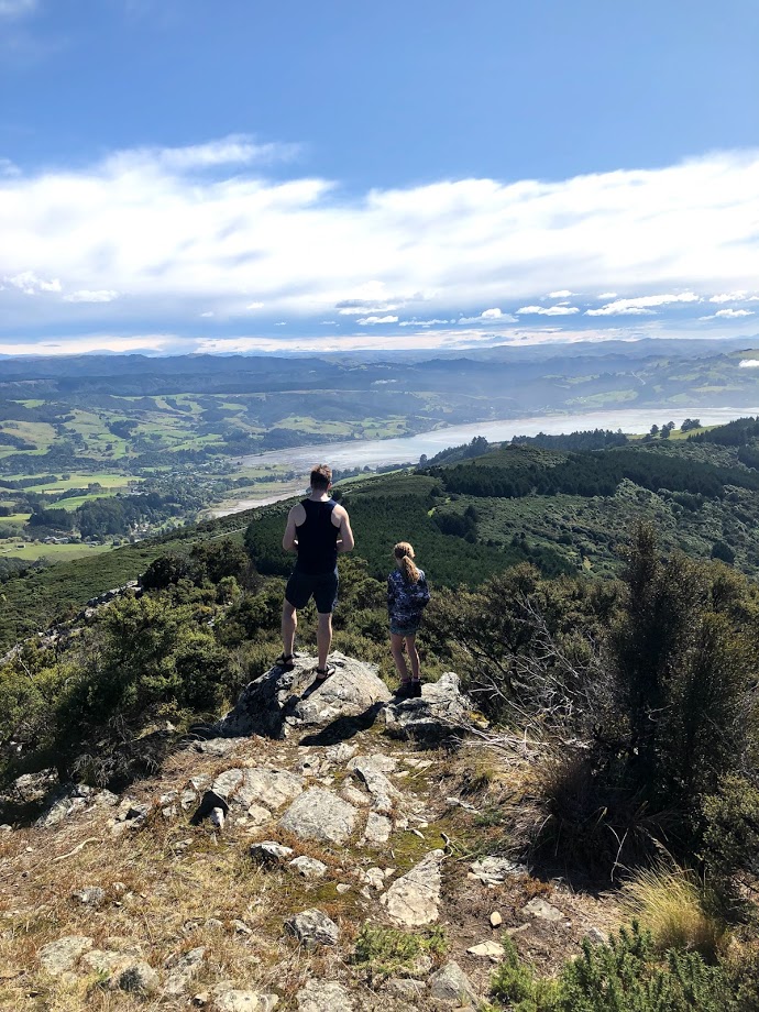 Although the Orokonui Eco-sanctuary was closed and we didn’t get to see a Kiwi bird, we opted to hike up Mopanui for an epic panoramic view of the area. After a steep but short scramble up a path, a exposed trig (aka trigonometry tower) greeted us at the summit. Wow! What a view!