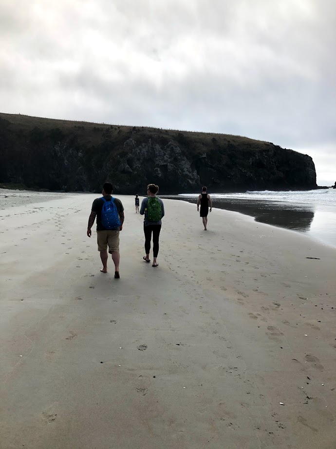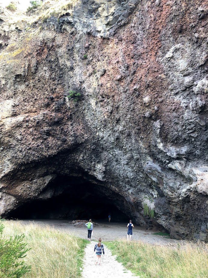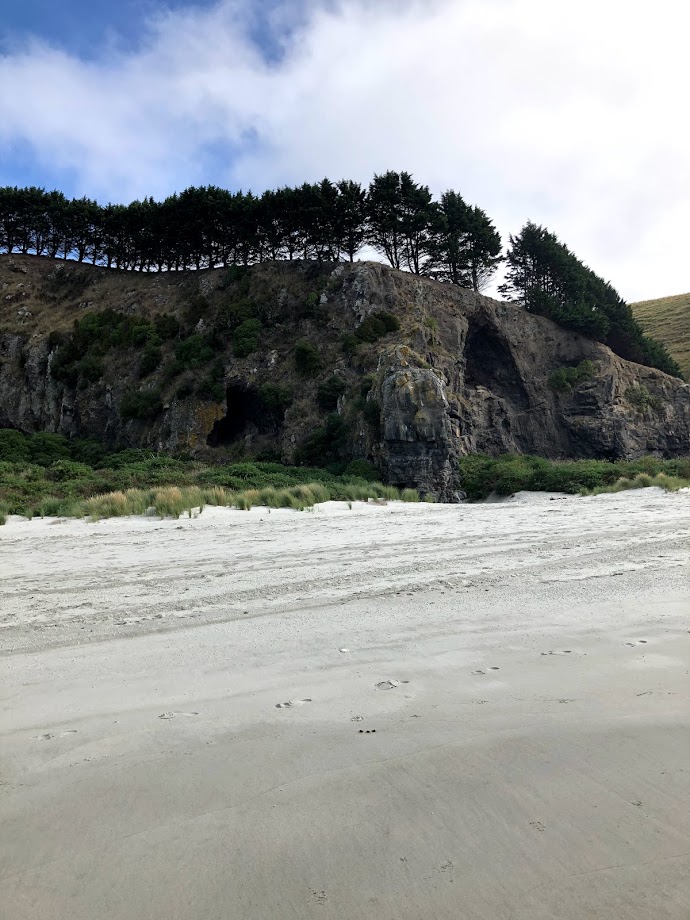 Following our morning hike, a short drive landed us on Long Beach. This tranquil sandy beach stretches 2.4 kilometres between coastal rock formations. We strolled to the west end of the beach to explore the caves and stare up at the rock cliffs, which were studded with climbing anchors. Although we didn’t spot any, you can meet blue penguins on this beach!