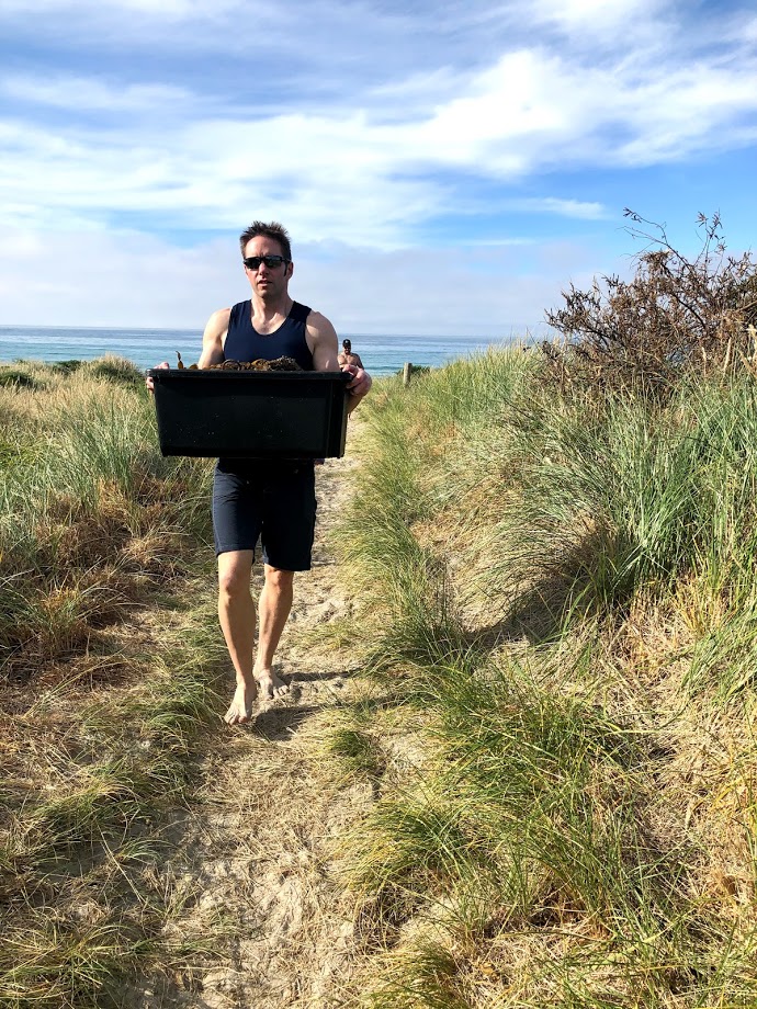 Some cartwheeled the beach, some went for a swim, some did pull ups on driftwood and others did some seashell souvenir shopping. Gathering seaweed for Niccy’s garden was the final task. Phew, that stuff was heavy!