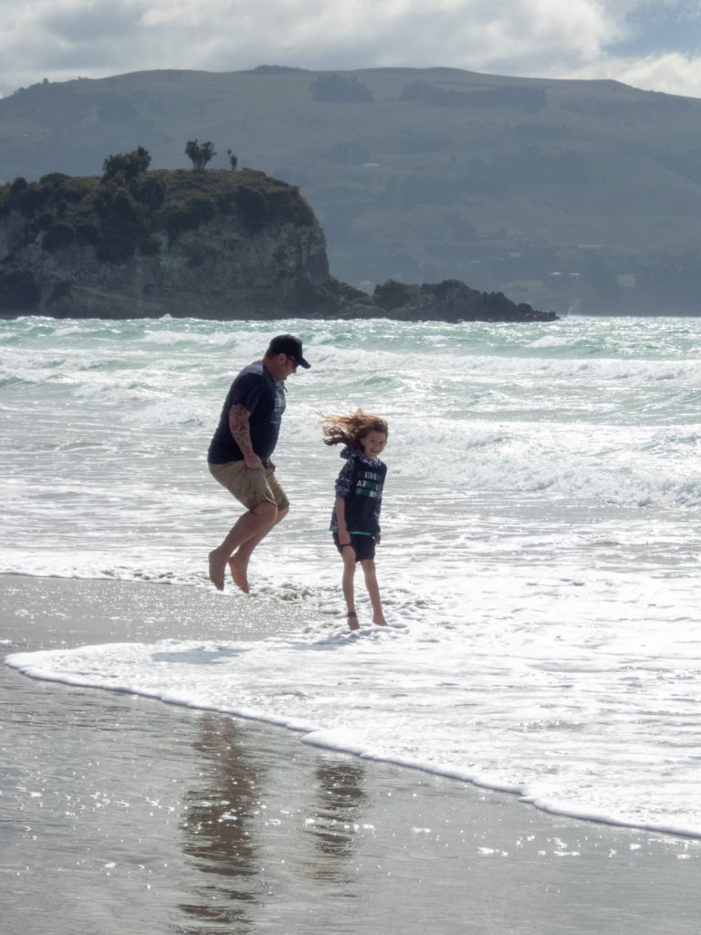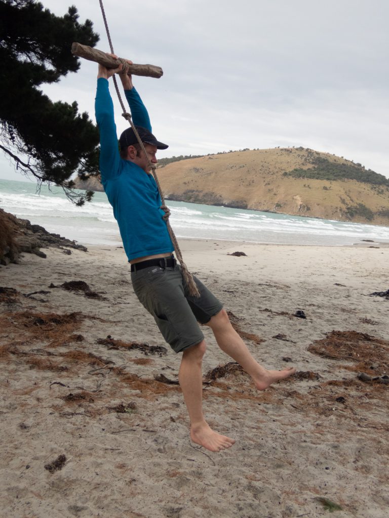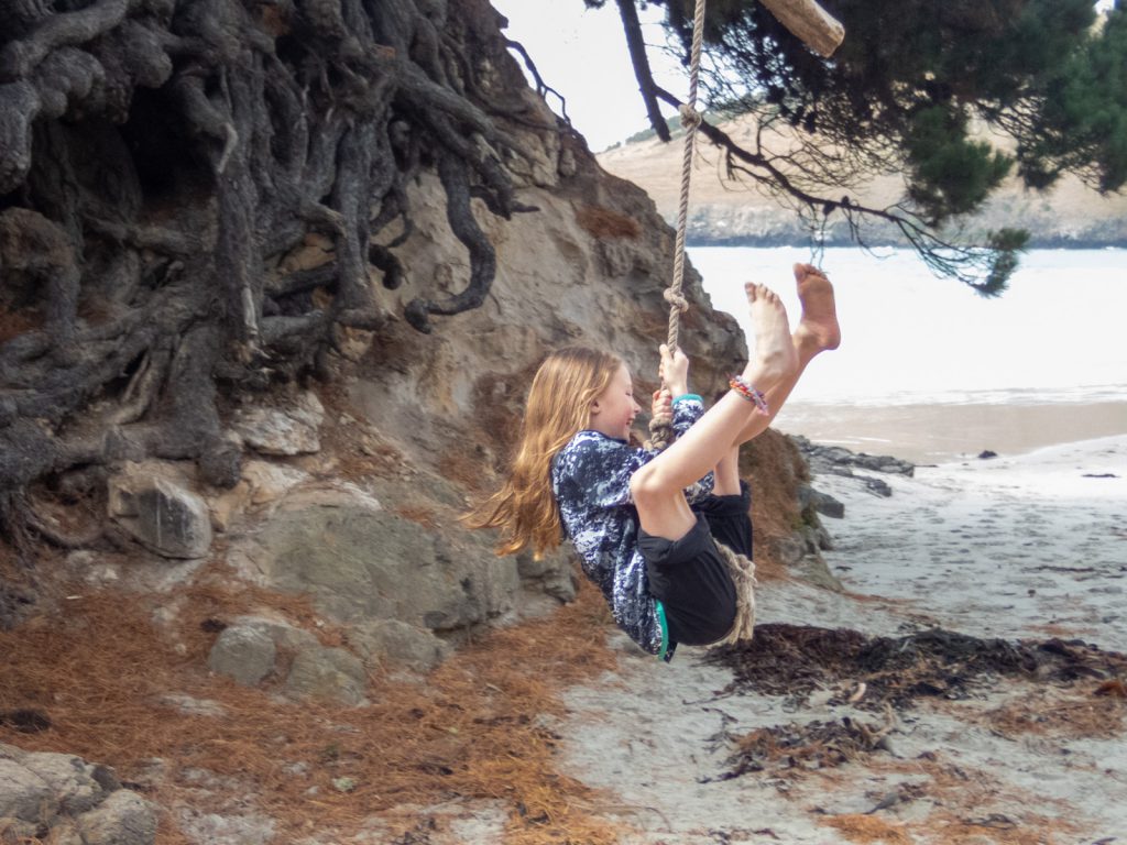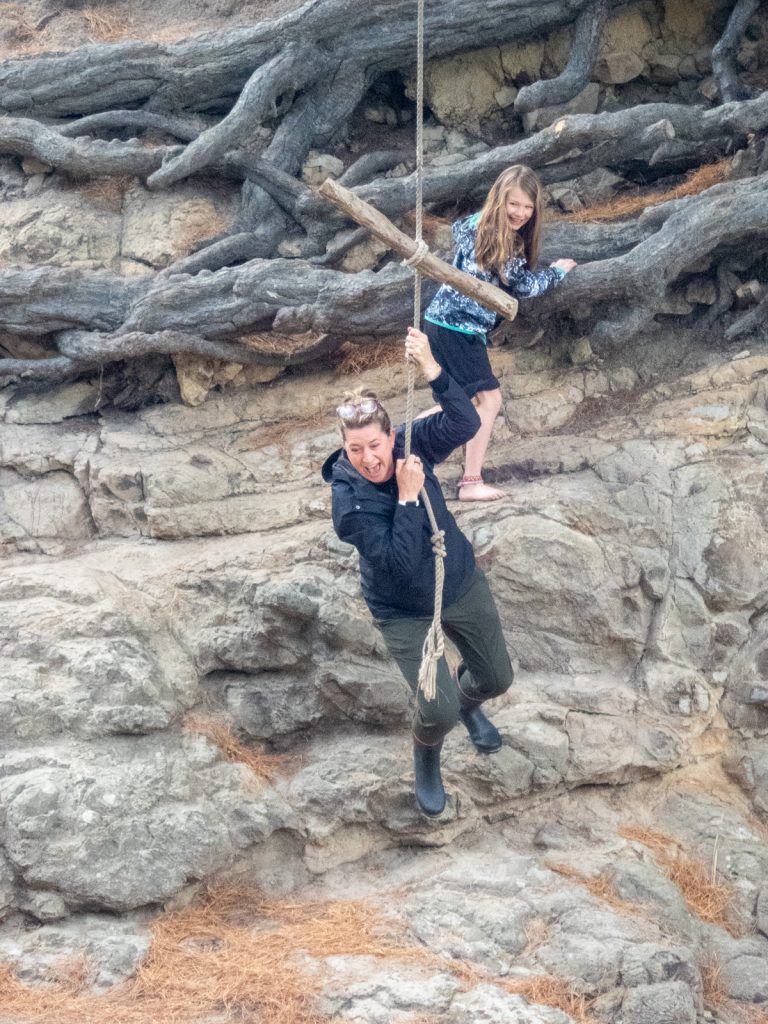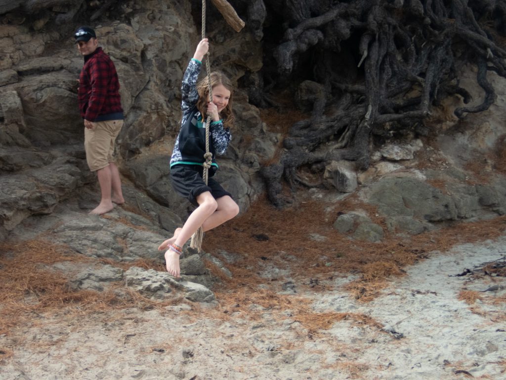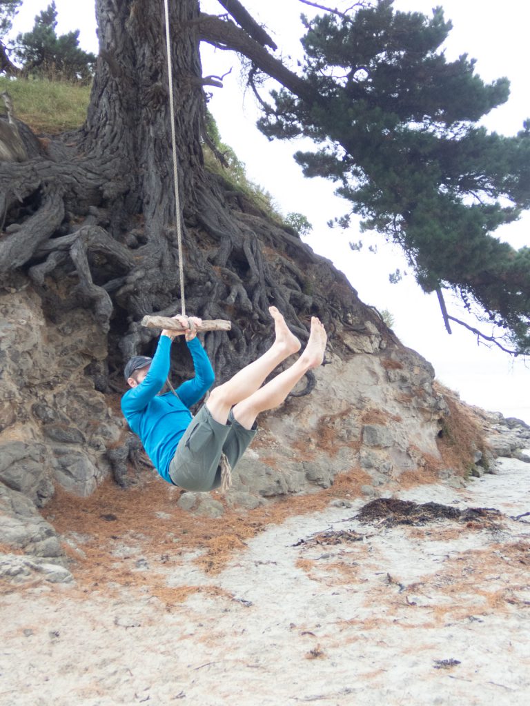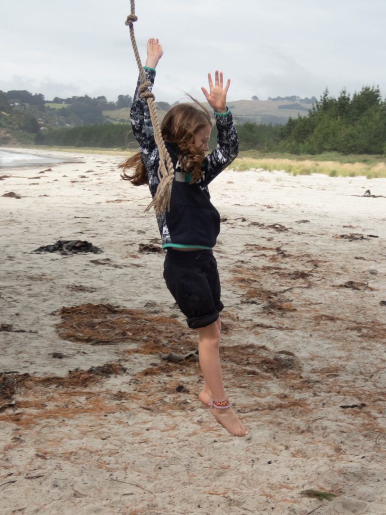 First up, we took a short drive around the Purakauni Inlet and ended up next to the mouth of the inlet and a beautiful beach with views of the bay. Charlotte was excited to show us a rope swing, and all the adults were brave enough to release their inner 10 year old and take a swing…some more gracefully then others!